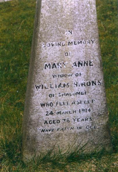 This grave is located in the grounds of the parish church of Aynhoe, Northamptonshire