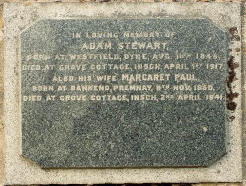 This grave is located at Insch Cemetery, Insch, Aberdeenshire. The inscription reads: